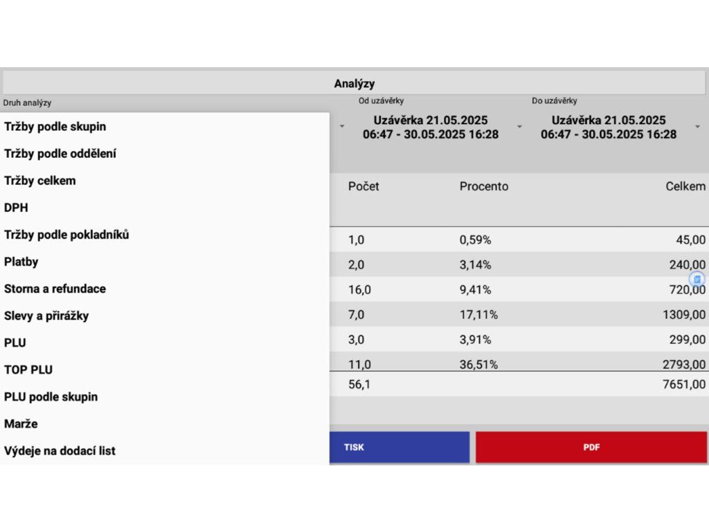 o Analýza podle Tržby TOP PLU/EAN (TOP 5/10/20/50/100)