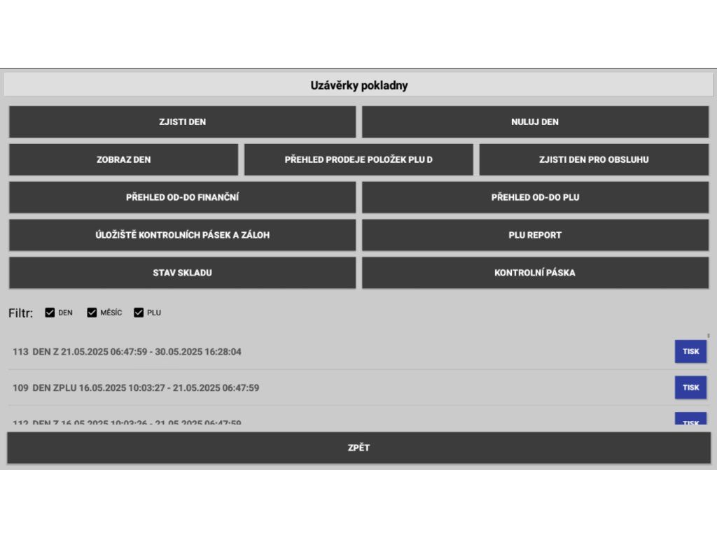 o Možnost zpětného tisku jakékoliv uzávěrky pokladny