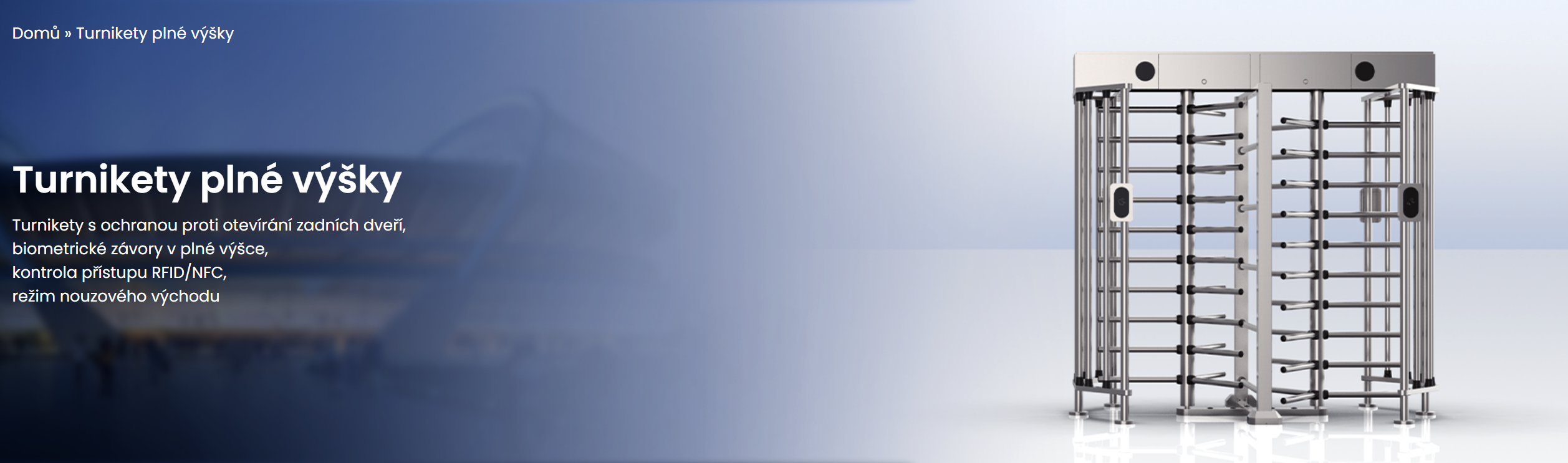 Plnovýškové turnikety – Robustní bezpečnostní bariéry pro kontrolu přístupu s vysokým rizikem . Klíčové vlastnosti : 360° ochrana proti lezení a detekce neoprávněného přístupu Konstrukce z nerezové oceli a plnovýškové turnikety s ochranou proti neoprávněnému přístupu Biometrická integrace a nouzový režim pro odpojení Použití : Stanice metra, datová centra, věznice, průmyslová zařízení.